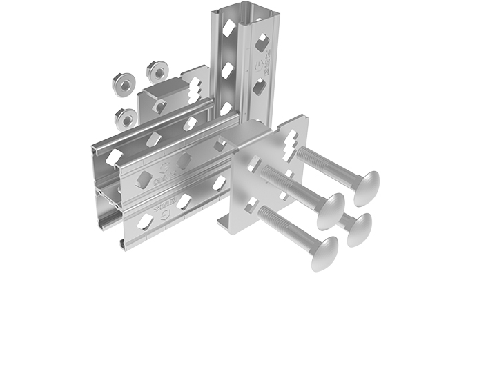 GS笑臉系統將主要連接方式更改為螺栓對穿形式,并且歷經多次開孔測試,最終確定設計為菱形鋸齒孔,可以保證水平高度調節精度4mm,安裝效率提高30%,從根本上規避了當下成品支架和傳統支架的安全隱患。輕型GS笑臉系統主材為GS槽鋼,在確保同樣的力學計算下,用鋼量減少20%。三面6條加勁肋的設計,全面提高了抗彎性能、抗剪性能、抗滑移性能和抗拉性能,承載力值提高5倍。